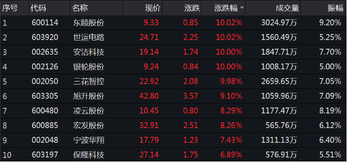 其中东睦股份、世运电路、安洁科技、银轮股份和三花智控等多股涨停。