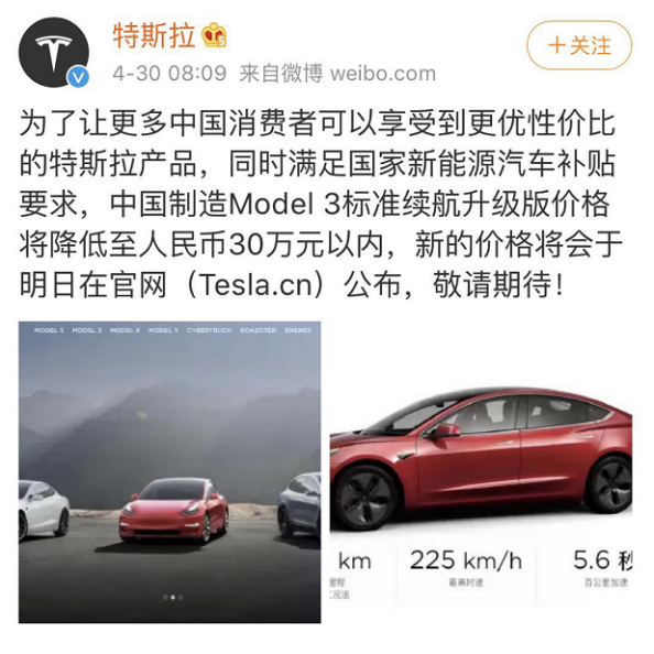 此外,在今日的财报会议中,马斯克还表示,4月30日起,标准续航版国产 Model 3 将降至 30 万以内,以应对新的补贴政策。