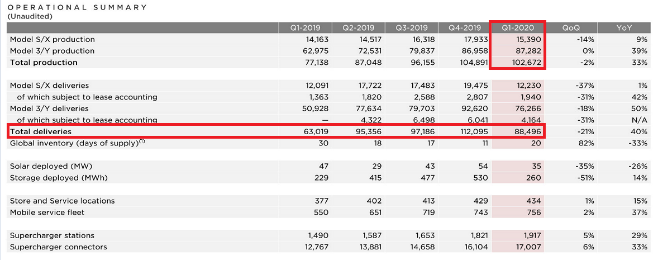 数据显示,特斯拉一季度共生产10.2672万辆电动车,上年同期为7.7138万台,同比增长33%。其中Model 3与Model Y 共生产8.7282万辆,同比增长39%;Model S与Model X 共生产1.539万辆,同比增长9%。