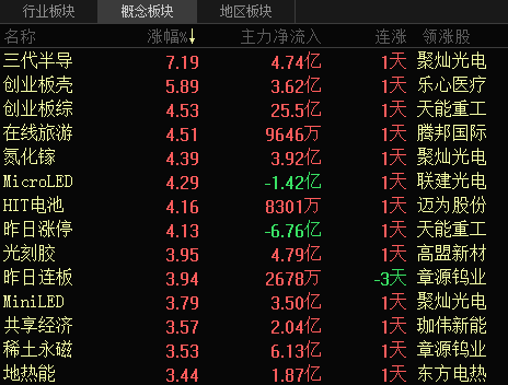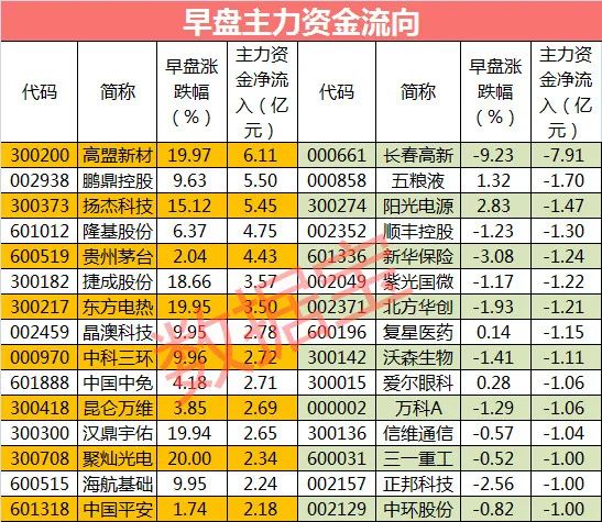 主力资金流向上,长春高新主力资金净流出最多,达7.91亿元,早盘股价下跌9.23%,股价创今年6月18日以来新低。高盟新材、扬杰科技、隆基股份、捷成股份、晶澳科技、聚灿光电等题材股获主力资金净流入居前。
