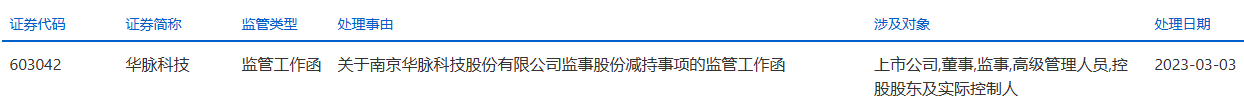 3月3日晚,上交所向华脉科技下发监管工作函,涉及对象为上市公司、董事、监事、高级管理人员、控股股东及实际控制人。