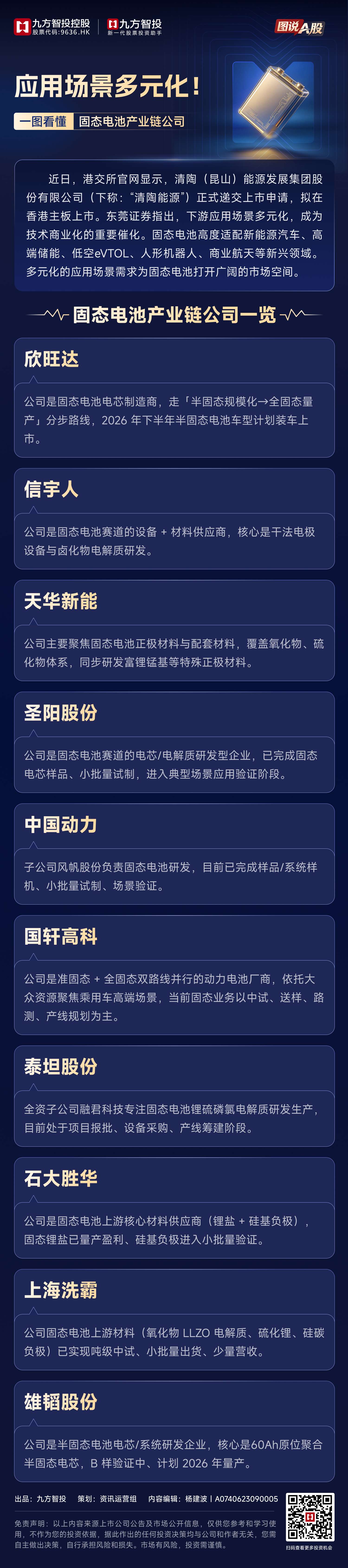 应用场景多元化!一图看懂固态电池产业链公司