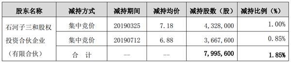 而上述减持计划披露之前的半个月前,也就是2019年9月23日晚间,九安医疗刚刚公告称,三和公司当年3月1日晚间披露的减持不超过公司总股本2%股票的减持计划已经实施完毕,实际减持了占公司总股本1.85%的公司股份。