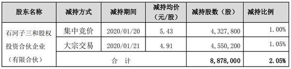 今年1月21日晚间,九安医疗披露的减持进展公告显示,三和公司于1月20日、1月21日以大宗交易和集中竞价方式减持887.8万股公司股份,占公司总股本的2.05%,且减持计划涉及的集中竞价方式减持数量已过半。
