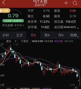 9月12日,*ST大控(600747)早盘跌停,报0.79元/股,卖一封单逾21万手。截至昨日,该股票已连续15个交易日收盘价格均低于1元。根据上交所相关规定,连续20个交易日收盘价低于1元,公司将会被暂停上市。