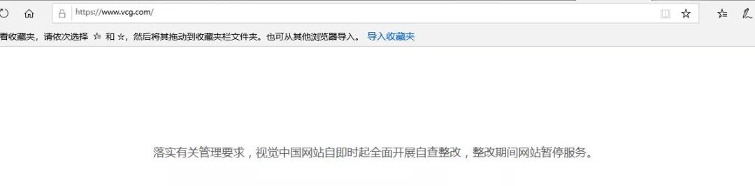 雷厉风行之下,视觉中国网站随即暂停服务。目前,该网站主页已是一片空白,仅显示“落实有关管理要求,视觉中国网站自即时起全面开展自查整改,整改期间网站暂停服务。”