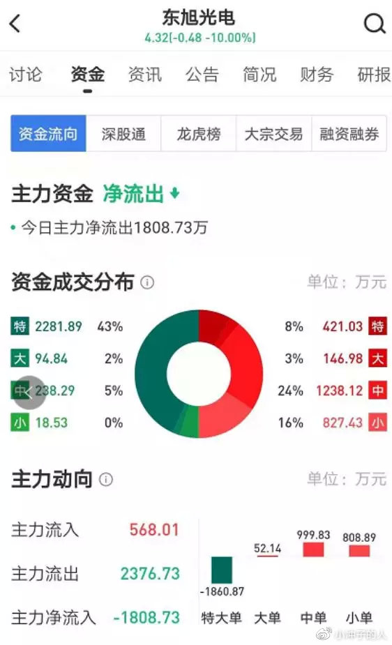 从当日资金流向看,截至当日10点左右,主力净流出资金高达1808万元,其中特大单流出超2281万元,大单94万元,中单238万元。
