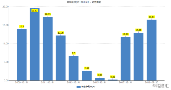 此外,需要注意的是,昊华能源的销售净利率也常年低于20%。据数据显示,自2010年净利率达到了21.63%之后,该公司的净利率便逐年走低,直至2016年的0.25%。随后2017年至2019年9月30日,其净利率才慢慢至18.13%,不过仍低于20%这一水平线。而销售净利率不高的情况,则进一步反映了该公司主营业务盈利能力有限的问题。