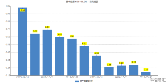 除了业绩表现不太给力之外,昊华能源的资产周转率也常年低于1倍。据数据显示,自2009年以来该公司的资产周转率一直在1倍的下方徘徊,而从2016年开始,其资产周转率更是骤降到0.25倍,截至今年9月30日,其资产周转率仅有0.19倍。如此低的资产周转率之下,则意味着其运营能力在大幅度下滑,销售能力也在大量减弱。
