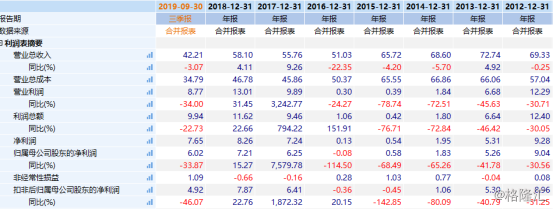 据财报数据显示,该公司除了2017年和2018年业绩表现稍好——营收和净利均实现同比增长之外,自2012年起便开始陷入营收净利双降的“泥沼”了。具体而言,2014年至2016年,其营收同步下滑分别为5.7%、4.2%、22.35%;归母净利润同比下降分别为65.26%、68.49%、114.5%。