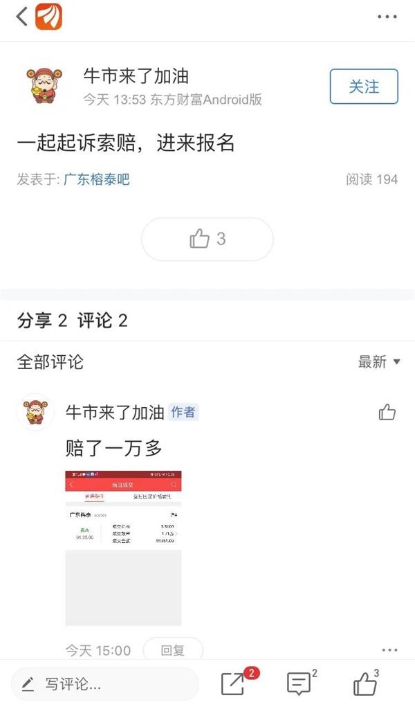 而在论坛里,也有投资者发起了征集索赔,不过目前看来报名参与的人还不多。