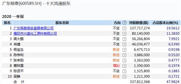 广东榕泰今年一季报显示,公司前十大流通股东中,榕泰瓷具和兴盛化工仍然位居第一、二位,其余8位流通股东均是自然人。机构成为广东榕泰前十大流通股东还要追溯到2018年年报时,当时工商银行的一只指数基金位居第六大流通股东。