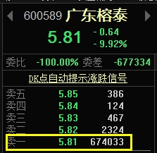 不过,广东榕泰复牌后仍然没有什么悬念,延续了停牌之前的连续下跌走势,直接封死在一字跌停板上直至收盘,最终跌幅为9.92%,收报5.81元/股。