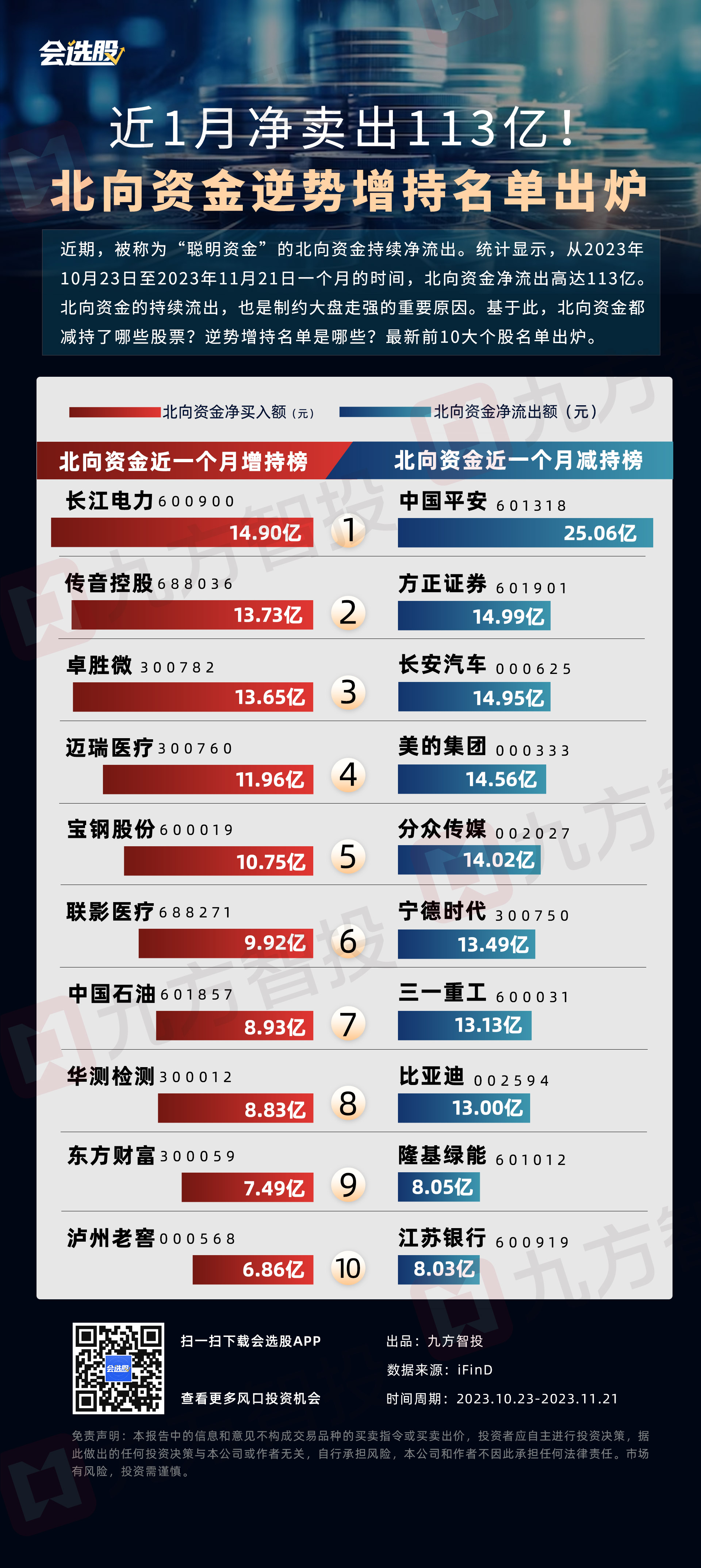图说A股|近1月净卖出113亿!北向资金逆势增持名单出炉
