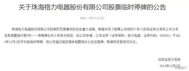 12月2日早间,格力电器因控制权变更拟发生重大进展而临时停牌,引起外界普遍关注。