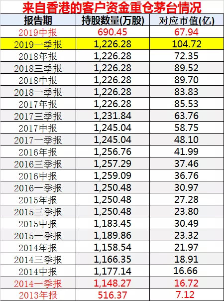 基金君发现,在贵州茅台的前十大流通股东中,经常出现一个神秘账户“某资产管理(香港)有限公司-客户资金(交易所)”,自2013年贵州茅台年报中出现这一账户之后,一直持有至今。