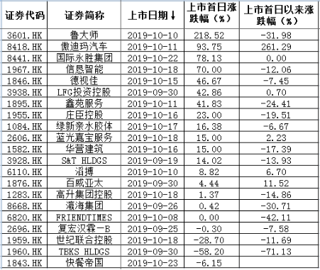 根据wind资讯统计,截至10月22日,今年9月以来,港股上市的新股共有21只,其中上市首日涨幅为正的个股占到17只,占比八成。