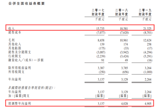 财务数据方面看,2017-2019财年,公司收益分别约为1573万坡元、1858万坡元及2132万坡元;经调整后净利润(不包含上市费用)分别约313万坡元、402万坡元及490万坡元,净利率分别约为19.9%、21.7%以及23.0%。