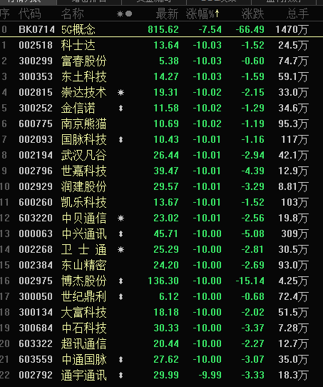 3月16日,在中兴通讯大跌之下,其他5G个股也大幅下跌,有多只跌停。