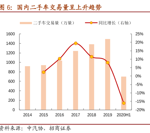 然而,2019年我国国内新车销量为2500万辆,二手车交易量虽也在不断上涨,但却仅有约1500万辆。