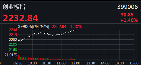 在宁德时代大涨的带动下,当天上午,创业板指数也狂飙超1.4%以上。