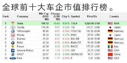 市值超越丰田成“全球车王”
