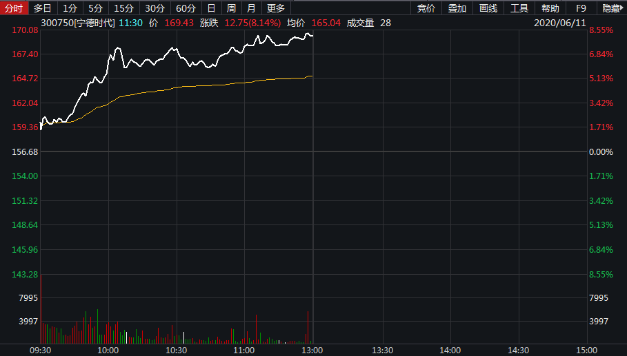 宁德时代盘中猛飙超8%