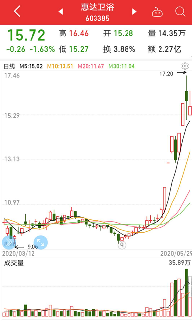 精装板块5月黑马股频出,海鸥住工和惠达卫浴5月累计上涨70%。昨日,处于股价底部的柯利达和大亚圣象股价涨停,金牌橱柜、华图山鼎等股也在跃跃欲试。今日早盘,柯利达再次涨停,索菲亚、奥普家居均涨超4%。