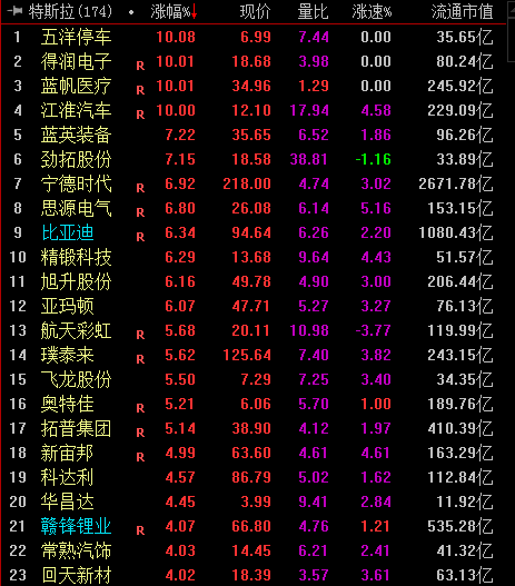 周一早盘,特斯拉概念股集体飙涨。截至发稿,五洋停车、得润电子、江淮汽车等4股涨停,宁德时代、比亚迪、思源电气等多股涨超6%,奥特佳、赣锋锂业等纷纷跟涨。