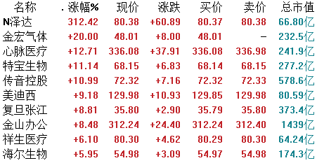 心脉医疗(688016.SH)、特宝生物(688278.SH)、美迪西(688202.SH)等生物医药股,也随着两市“吃药喝酒”行情有所上涨,涨幅在10%左右。
