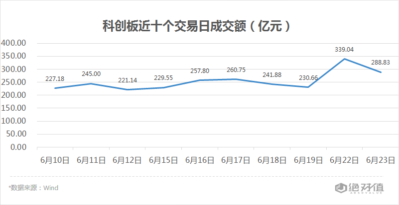 成交额方面,截至收盘,科创板全天成交额为288.83亿元,较上个成交日有所萎缩。