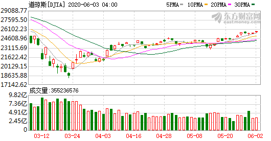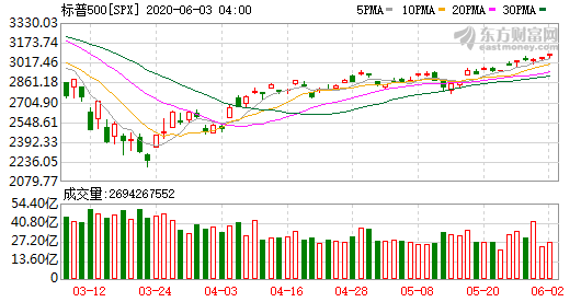 消息面上,美国供应管理学会(ISM)公布的数据显示,受新冠疫情影响,5月份美国制造业采购经理人指数(PMI)从前一个月的41.5点小幅升至43.1点,但整体行业仍处于收缩状态。