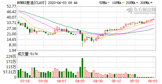 纽约油价2日上涨,7月交货的纽约轻质原油期货价格上涨1.37美元,收于每桶36.81美元。