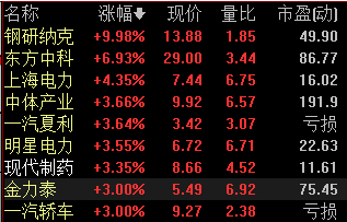 央企国企整合板块近两日表现活跃,盘面上新股钢研纳克连续涨停,东方中科涨近7%,上海电力、中体产业、一汽夏利等涨超3%。