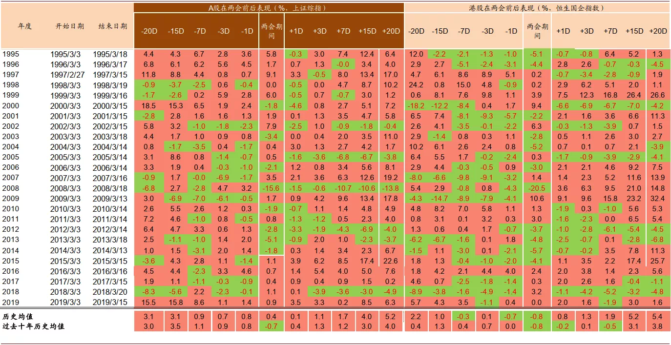 两会前后市场表现