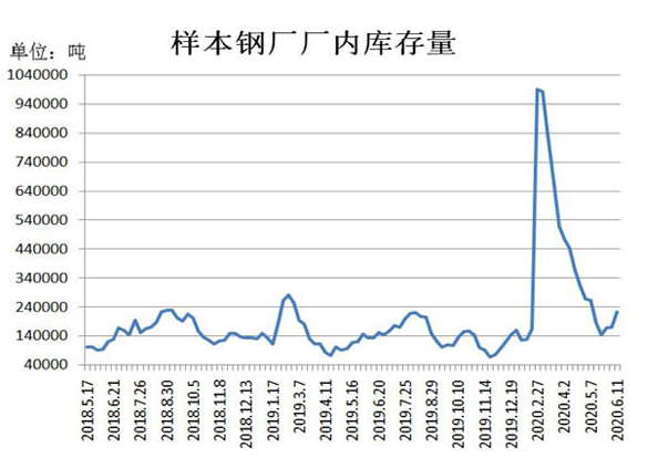 无独有偶,6月15日,中国钢铁工业协会发布了2020年6月上旬钢铁企业生产与库存情况:“本旬,重点统计钢铁企业钢材库存量1382.20万吨,比上一旬增加53.60万吨,增幅53.60%;比年初增加428.95万吨,增幅45.00%。”