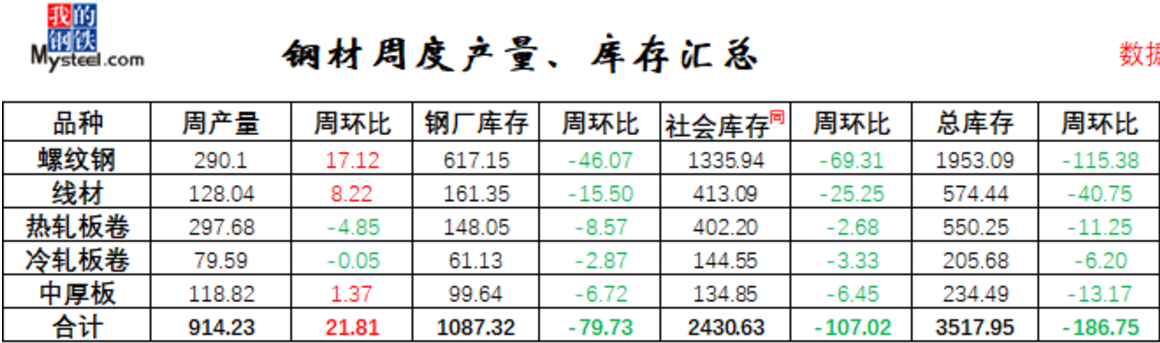 这可以得出一个明显的结论:因为周消费量大于周产量,所以库存还在继续降低,并且表现为社会库存的降低。