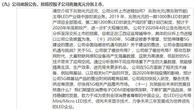 兆驰股份兼具5G和MiniLED概念。兆驰股份在接受机构调研时介绍,公司目前正与韩系厂商和国内厂商共同推动MiniLED背光电视产品的落地,公司主营LED封装业务的子公司兆驰光元分拆至深交所上市正在辅导中。在5G方面,公司做了微基站、IoT产品的技术储备和产品开发。