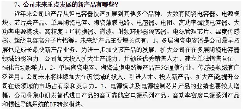 宏达电子在近期接受机构调研时介绍,单层陶瓷电容、陶瓷薄膜电路等产品在5G通信行业、传感器领域有广泛运用,公司产品涵盖钽电容器、多层/单层瓷介电容器、薄膜电容器、陶瓷薄膜电路等。具体到公司子公司,生产MLCC产品的冠陶电子和生产电源模块的宏微电子前三季度业绩实现较快增长,生产SLCC的宏达恒芯在民用通信领域业绩增幅同比在100%以上。