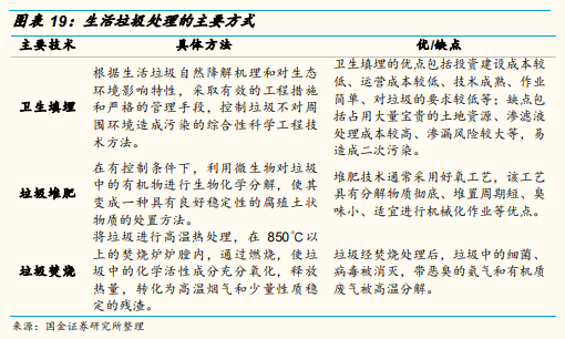 目前我国主要处理生活垃圾的方式主要包括卫生填埋、垃圾堆肥和垃圾焚烧等。