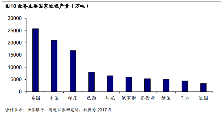 2017年美国和中国位列全球垃圾产量国家的冠亚军,分别为2.6亿吨和2.1亿吨。