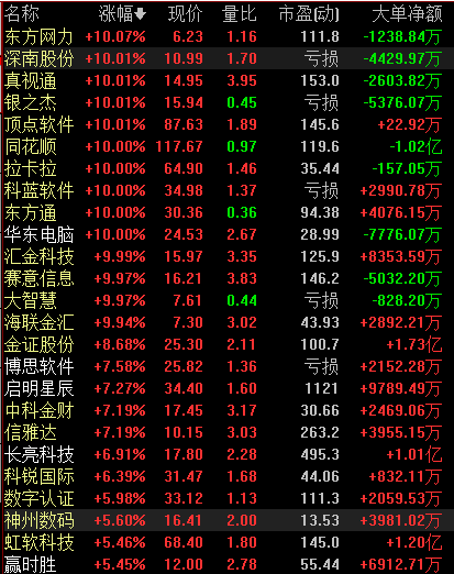 【主题线索】:9月5日,计算机应用板块爆发,截至发文,东方网力、深南股份、真视通、银之杰、顶点软件、同花顺等多股涨停,板块个股纷纷大涨。