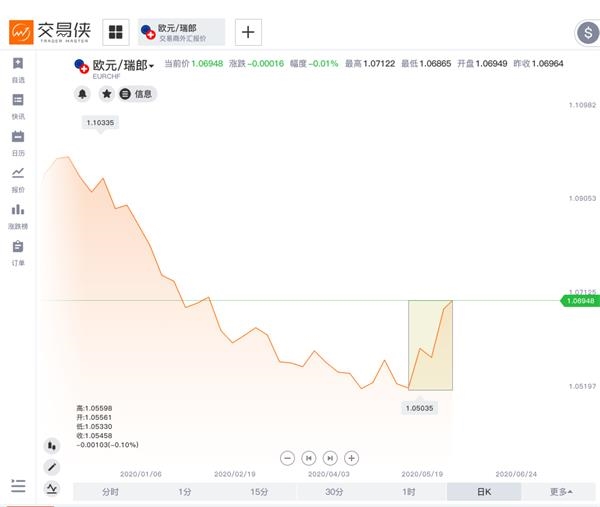众所周知,瑞郎也是一种典型的避险货币,而欧元则是仅次于美元的第二大贸易货币。今年大部分时间内,欧元兑瑞郎都在下跌。然而,两周前欧元兑瑞郎大幅上涨,并攀升至2月份以来的最高水平。这表明,风险偏好可能发生了大范围的变化。