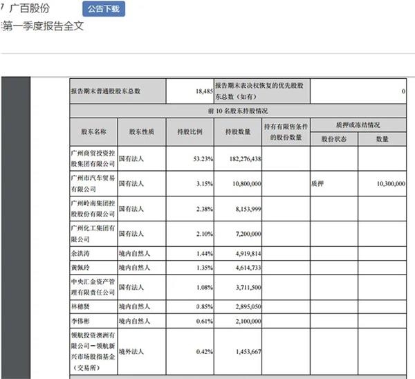 如余洪涛,至一季度末,他还是广百股份最大的自然人股东,持股比例1.44%,然而至6月5日,前十大股东榜中已找不到他的身影。
