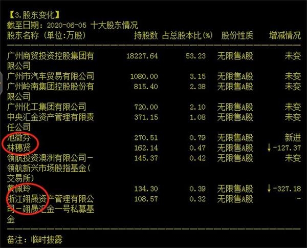 还有林穗贤和李伟彬 ,至一季度末,他们的持股比例分别为0.85%和0.61%,到此次停牌前,李伟彬已经退出了前十大股东榜,林穗贤的持股比例下降至0.47%。