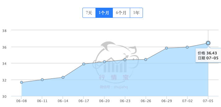 据智农通APP·行情宝数据显示,全国生猪外三元出栏均价从年初开始狂跌,连跌14周,然后出现大幅的报复性反弹,从5月中旬开始,已上涨10.29元/公斤,涨幅接近40%,让人咋舌。截至2020年7月6日,全国生猪出栏均价高达36.43元/公斤,逐渐逼近年内高点。
