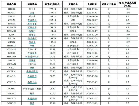 从行业分布来看,TMT行业占比接近70%,是中概股最主要构成。港交所对中概股回归较一般上市规则不设更严苛条件。相较而言,一批市值大、在原交易所成交活跃以及新经济属性的公司,是有潜力回归的中概股。