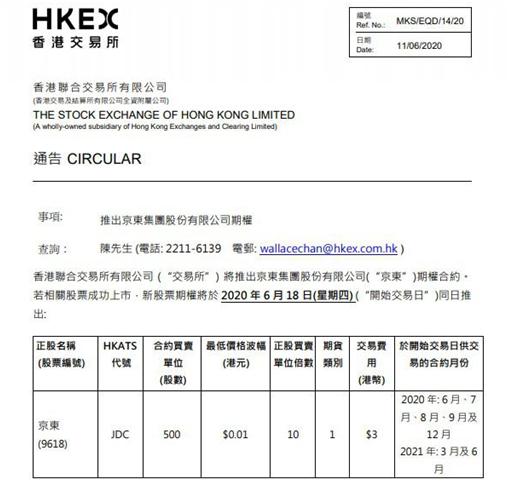 香港交易所已通知发行商,与京东股份相关的衍生权证可于该股份在香港交易所证券市场上市当日挂牌。有关京东权证的详情请参阅相关发行商的通告。