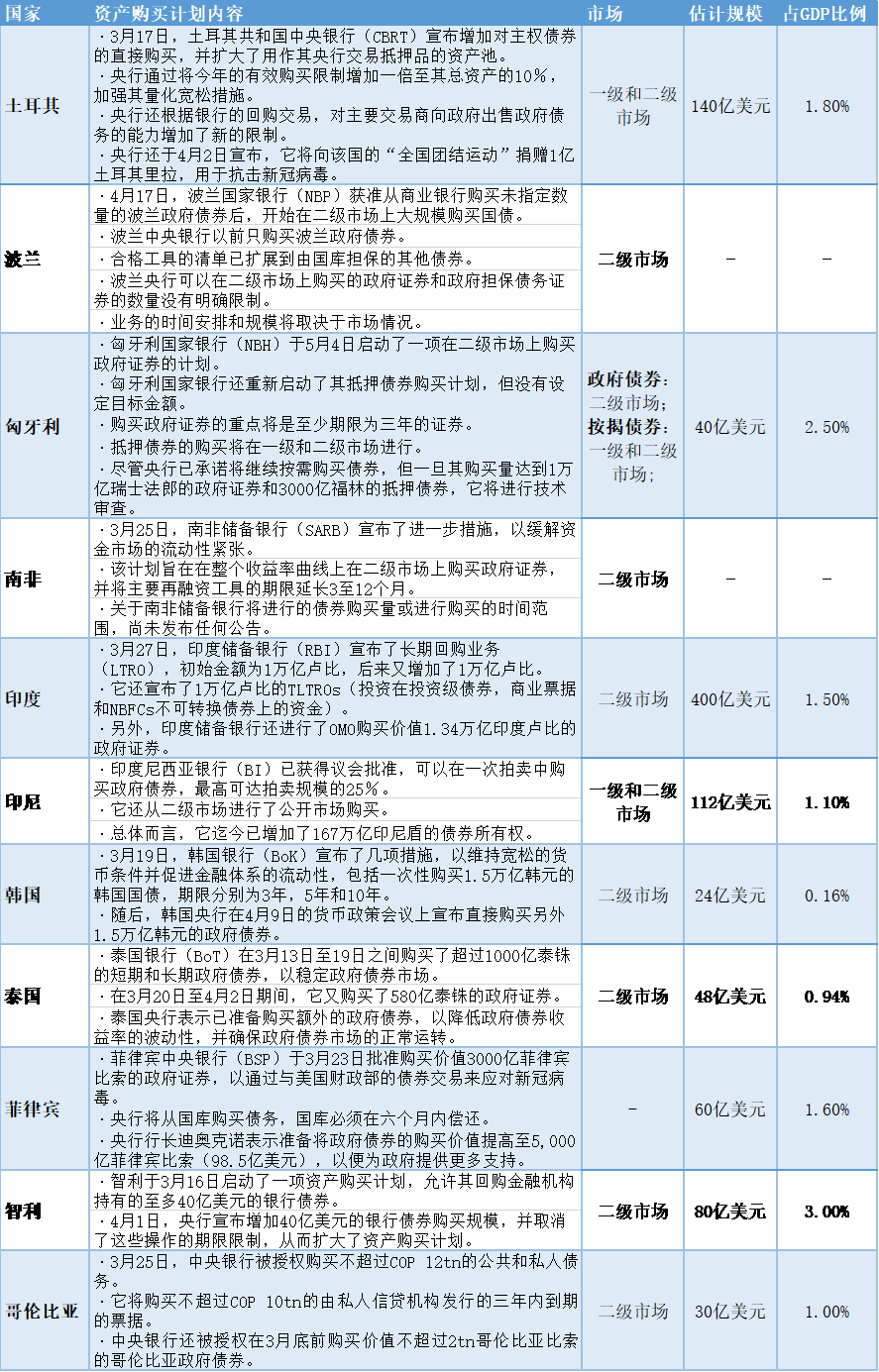 渣打全球研究主管罗伯逊对记者表示:“如今关于新兴市场央行是否也可参与量化宽松的争论越来越多,例如越来越多的新兴市场央行正在从事某种形式的QE,包括韩国,印度尼西亚和印度。我们认为,央行将不得不加大努力控制债券收益率,以保持较低的融资成本。QE已成新常态,不久后,YCC也会在发达和新兴市场得到更广泛的应用。”