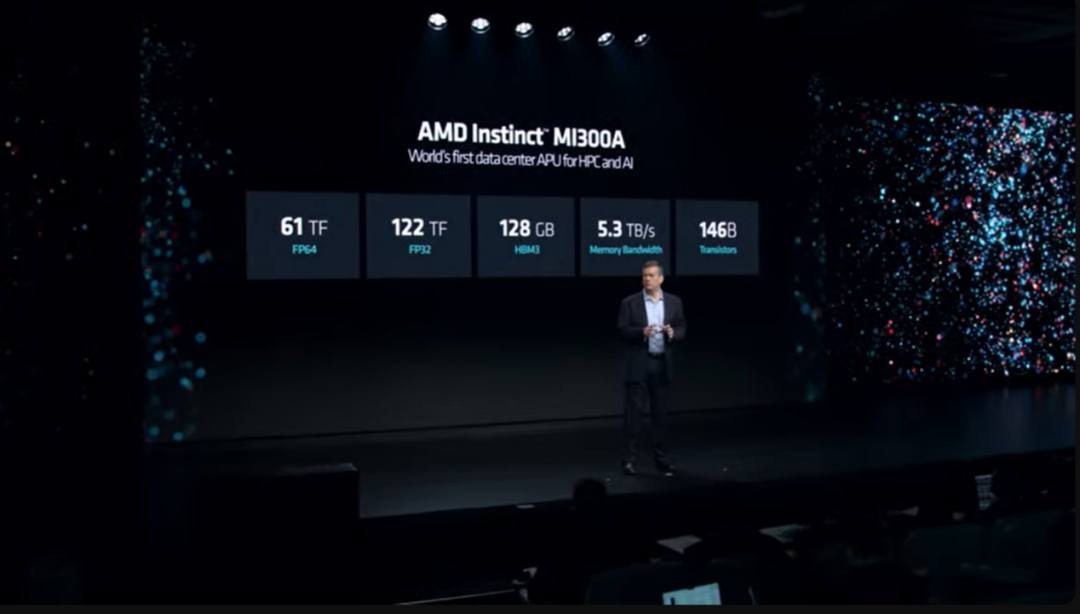 另外,AMD还推出了首款用于物联网和AI数据中心的Instinct MI300A APU。据AMD介绍,该APU是CPU和GPU的集成封装产品。